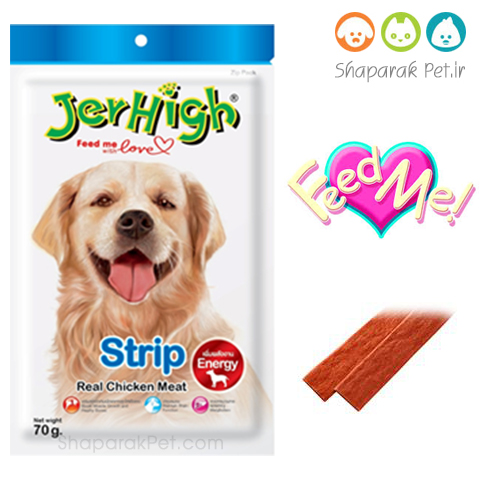 تشویقی نواری گوشت مرغ جرهای( JerHigh chicken strip ) یک میان وعده مملو از مواد مغذی و ویتامین است که سگ شما را سالم و قوی می کند، با طعم وسوسه انگیز مرغ که سگ شما نمی تواند در برابر آن مقاومت کند. این تشویقی به شکل نواری است و  خوردن آن برای سگ شما  آسان و سرگرم کننده است. تشویقی نواری جرهای از گوشت مرغ واقعی تهیه شده و توسط تیم متخصص بسیار مجرب ما با دقت تهیه شده است. این تشویقی سرشار از تمام مواد مغذی است که بهترین دوست انسان برای سالم و شاد بودن به آن نیاز دارد. شما می توانید مطمئن باشید که جرهای پاداشی است که سگ مورد علاقه شما سزاوار آن است. وزن این محصول 70 گرم و تولید کشور تایلند است.