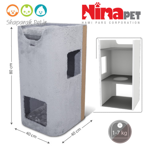 لانه دو طبقه نیناپت، یک لانه بسیار فانتزی برای گربه های دلبندتان خواهد بود. این خانه مکعب مستطیل شکل ،که  از دوطبقه تشکیل شده که 3 گربه به راحتی و بطور  همزمان میتوانن از آن استفاده کنند ودیوار این مبل داری اسکرچر میباشدو در طبقه وسط این لانه دارای یک حفره است برای حرکت گربه ها به طبقات این لانه یه استراحتگاه و همچنین جایی برای سرگرمی گربه یا گربه های دلبند شما میباشد . به علت فرم خاص این خانه جای کمی رو رو در منزل به خود اختصاص میدهد.