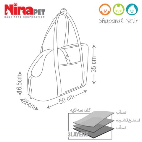 کیف حمل نیناپت مدل پوچه نوعی از کیف های حمل حیوانات می باشد که به صورت دوشی مورد استفاده قرار می گیرد. جنس آن از پارچه ضد آب و با کیفیت می باشد که بسیار مقاوم است و امنیت حیوان شما را کاملا تامین می کند. این ساک به راحتی قابل شستشو است. ابعاد کیف : 26 × 35 × 50 سانتی متر برای وزن 1 تا 9 کیلوگرم