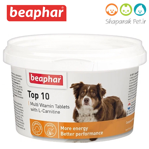 قرص مکمل بیفار تاپ تن ، حاوی انواع ویتامین های ضروری، موادمعدنی و عناصر کمیاب می باشد که مصرف آن باعث افزایش تحرک و شادابی و بهبود شرایط فیزیکی سگ ها میشود. این محصول در سگ های جوان باعث رشد سریعتر استخوان ها و دندان ها خواهد شد وهمچنین موجب درخشندگی چشم ها و براق شدن پوشش خارجی بدن می گردد. قرص های مولتی ویتامین تاپ 10 در سگ های مسن باعث افزایش تحرک و سرزندگی آنها میشود، همچنیناین قرص مکمل حاوی اسید آمینه ال کارنتین می باشد که باعث تقویت عضلات در سگ ها می شود. نحوه مصرف : به ازای هر 5 کیلوگرم وزن بدن روزانه یک قرص به صورت تشویقی داده شود. این محصول مناسب سگ های آبستن و شیرده نیز می باشد. استفاده از این محصول مناسب توله سگ ها با حداقل سن 6 هفته و نیز کلیه سگ های بالغ بوده و هیچگونه محدودیتی درمدت زمان مصرف ندارد.