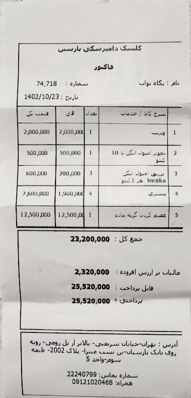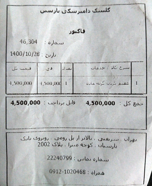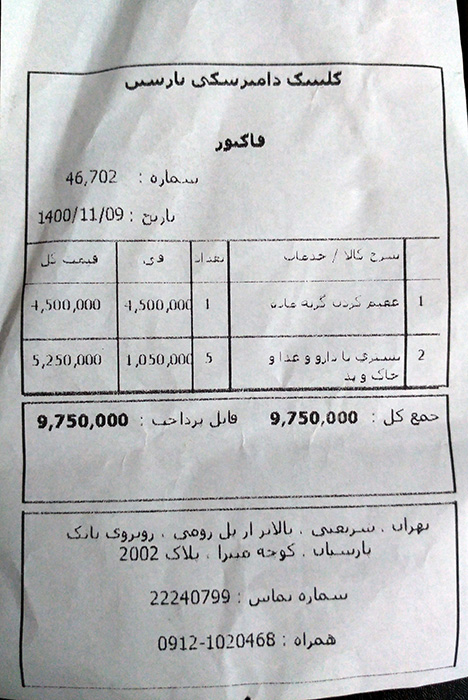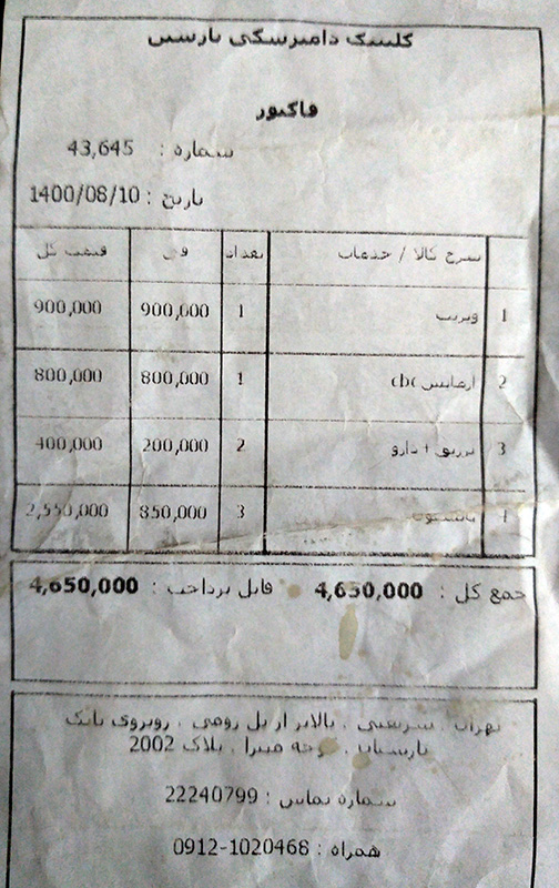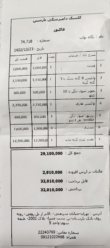 برخی از پرداخت ها جهت درمان و عقیم سازی