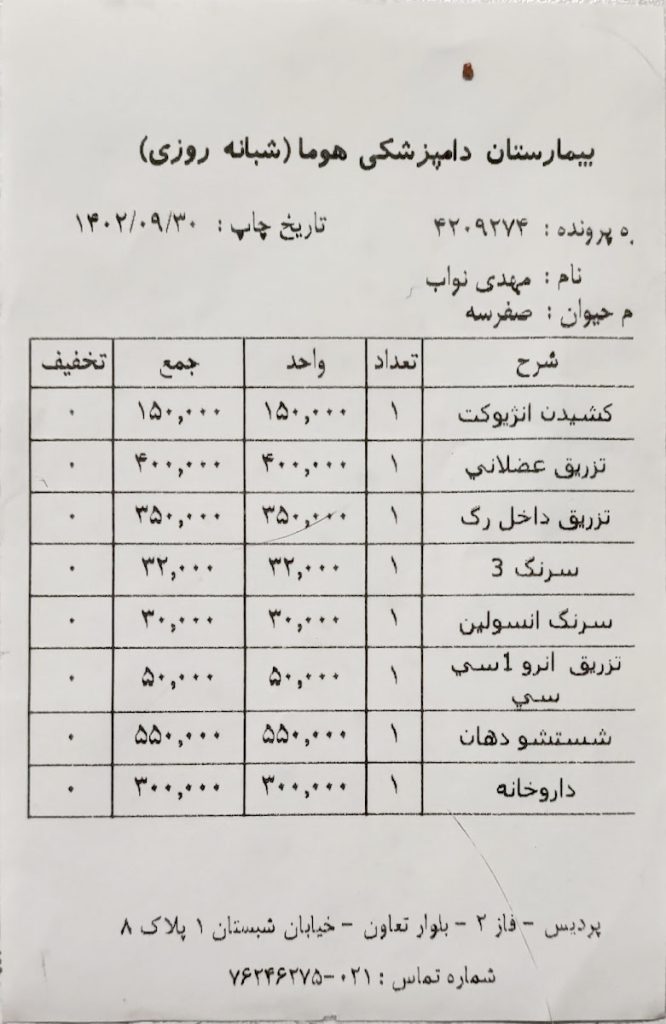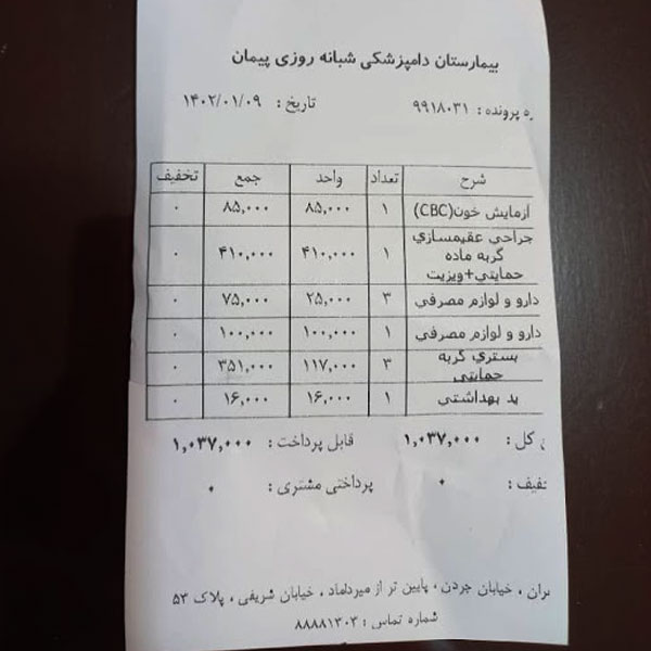 مبلغ 910 هزار تومان از کمک شما دوستان برای جراحی فک و لگن دو گربه تحت حمایت کت اکباتان واریز شد.